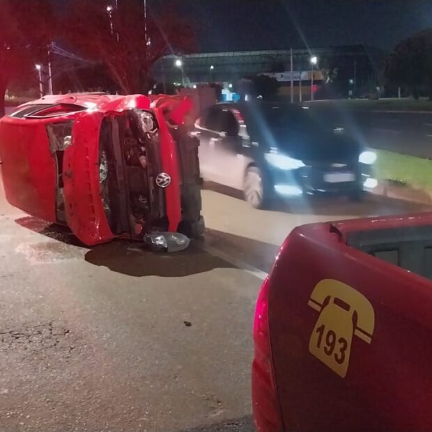 Na entrada do Aeroporto de Brasília, um condutor perdeu o controle de seu veículo e acabou capotando na pista. A ocorrência foi atendida pelo Corpo de Bombeiros Militar do Distrito Federal (CBMDF) por volta das 21h05 da última segunda-feira (25), com o deslocamento de duas viaturas.