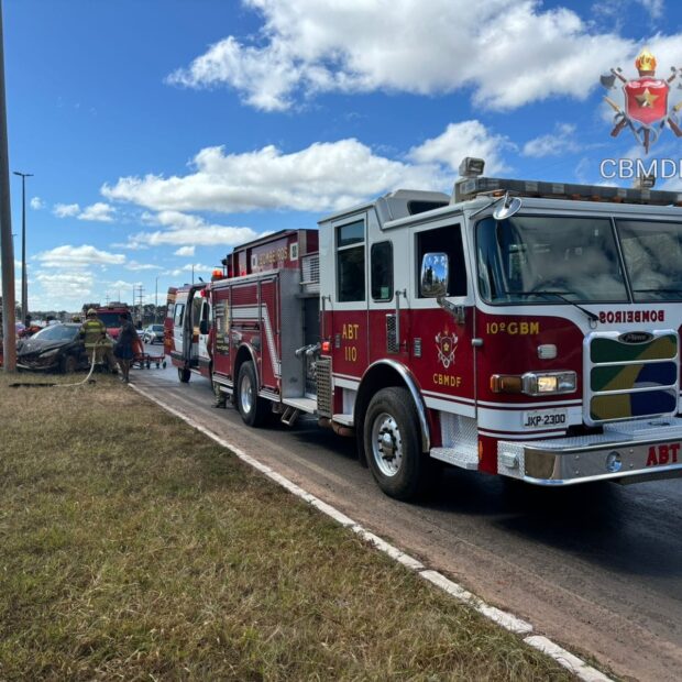 Ao chegar ao local, os socorristas encontraram um Peugeot 206 preto, que havia colidido com o poste e a placa. O condutor, identificado como G. P. S., de 76 anos, saiu ileso do acidente. No entanto, a passageira, Sra. M. A. S., de 48 anos, sofreu escoriações pelo corpo. Ela foi atendida no local e, em seguida, transportada consciente e orientada para o Hospital Regional de Sobradinho (HRS).