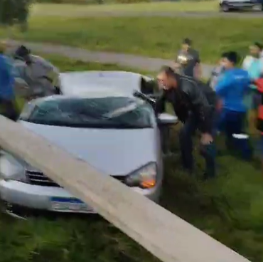 Nas primeiras horas desta quinta-feira (9), um poste caiu sobre um veículo após forte colisão. O acidente ocorreu em uma via de Santa Maria, sentido Gama.