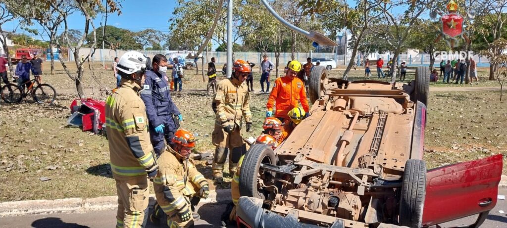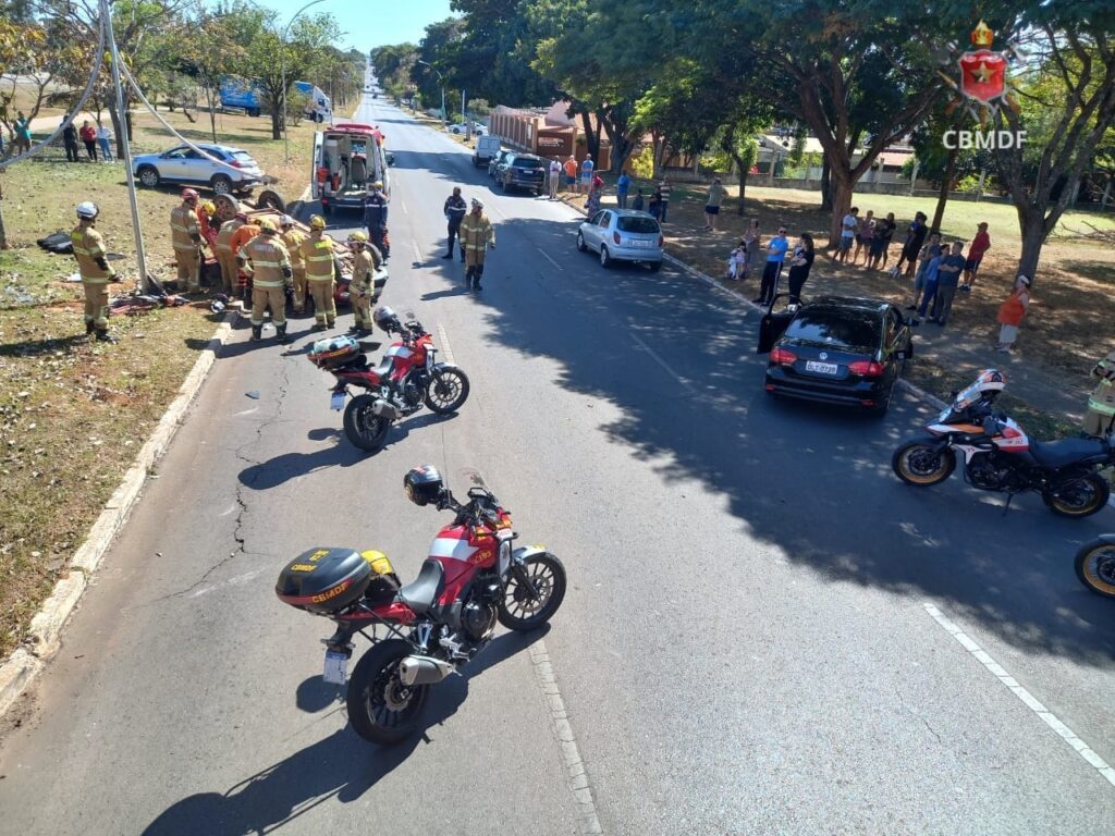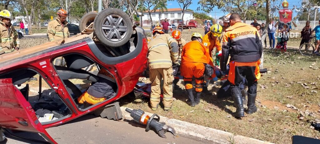 Na manhã desta terça-feira (25), o Corpo de Bombeiros Militar do Distrito Federal (CBMDF) foi acionado às 10h34 para atender uma colisão que resultou em capotamento na quadra W5 909 Norte. A operação contou com o envio de seis viaturas ao local.