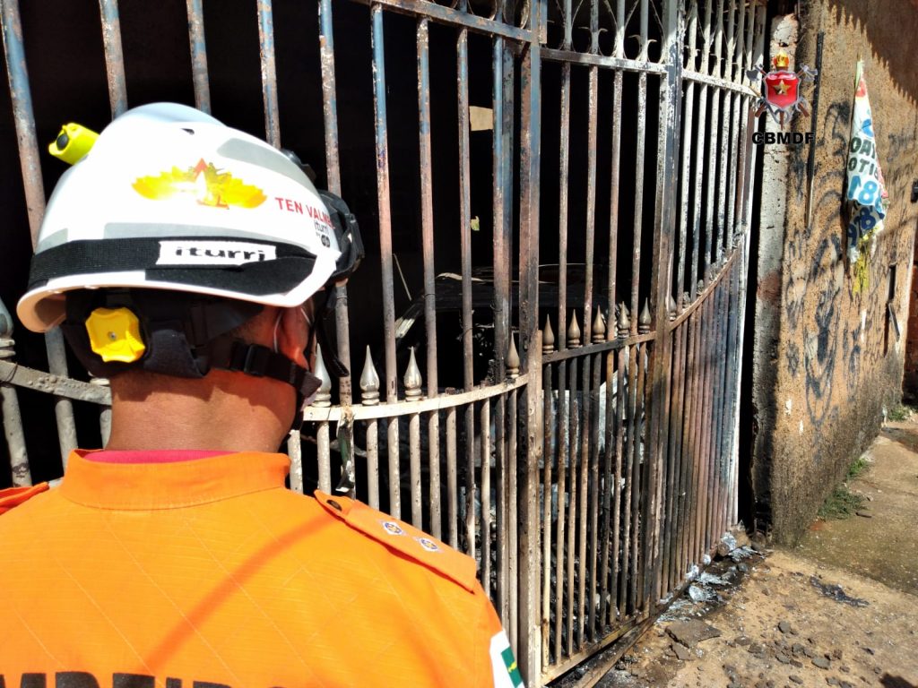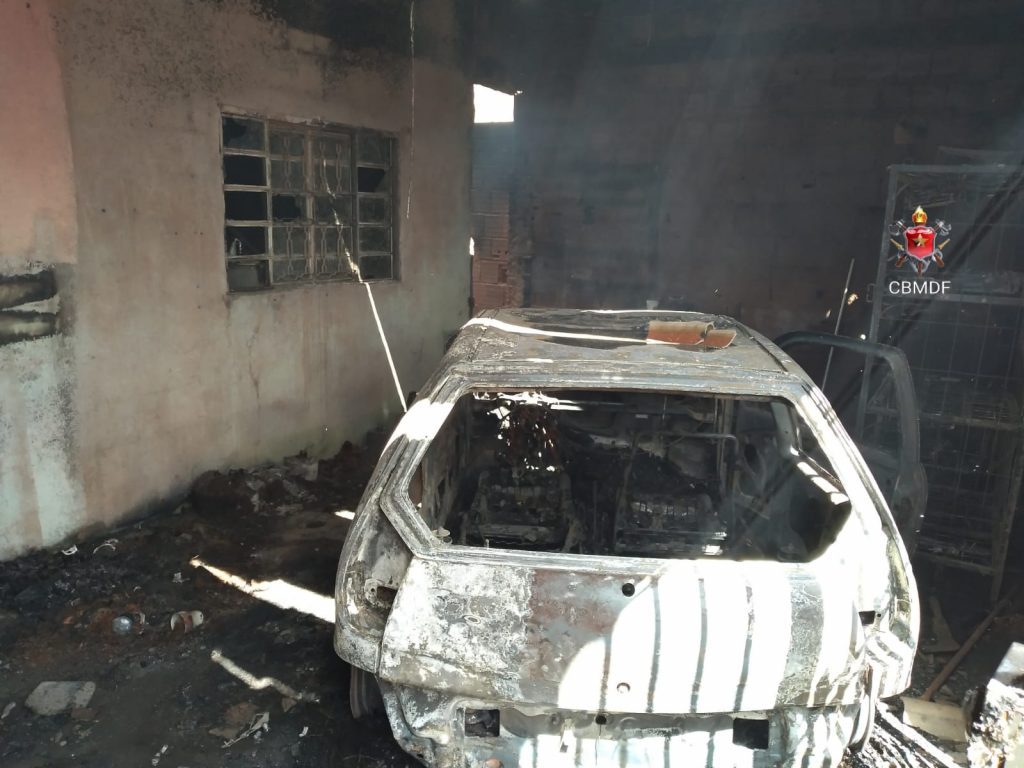 Um Fiat Pálio pegou fogo na garagem de uma residência em Ceilândia na tarde desta segunda-feira (21).