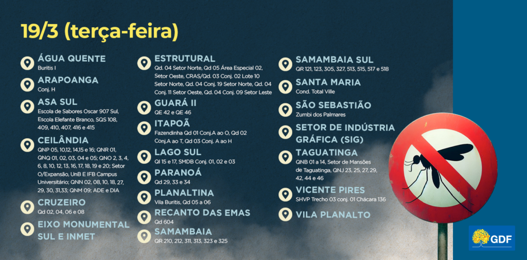 Recomendação da Vigilância Ambiental é que as pessoas abram portas e janelas de suas residências quando passar o veículo do inseticida de ultrabaixo volume (UBV), para maior eficácia do produto; aplicações serão feitas das 4h às 6h e das 17h às 19h.