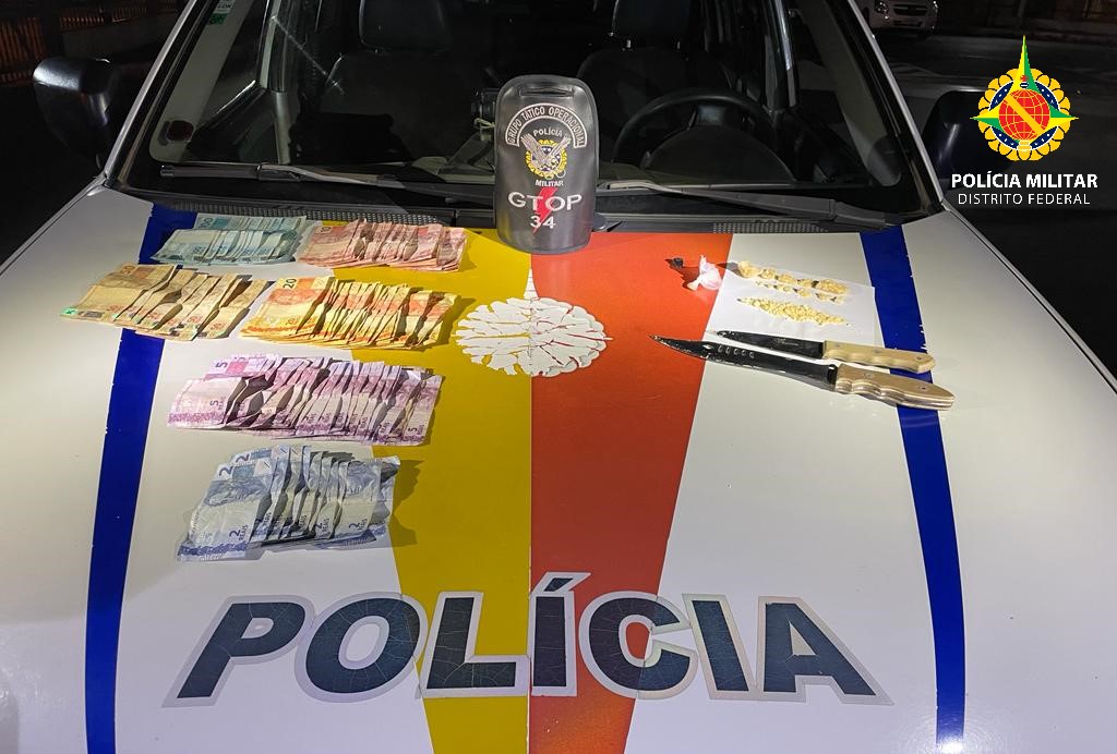 Os policiais realizaram uma busca no carro do segundo suspeito que estava estacionado próximo ao local da abordagem e encontraram mais R$ 1.400,00 em espécie. O abordado disse que o dinheiro era proveniente de trabalho, mas não informou qual era a ocupação.