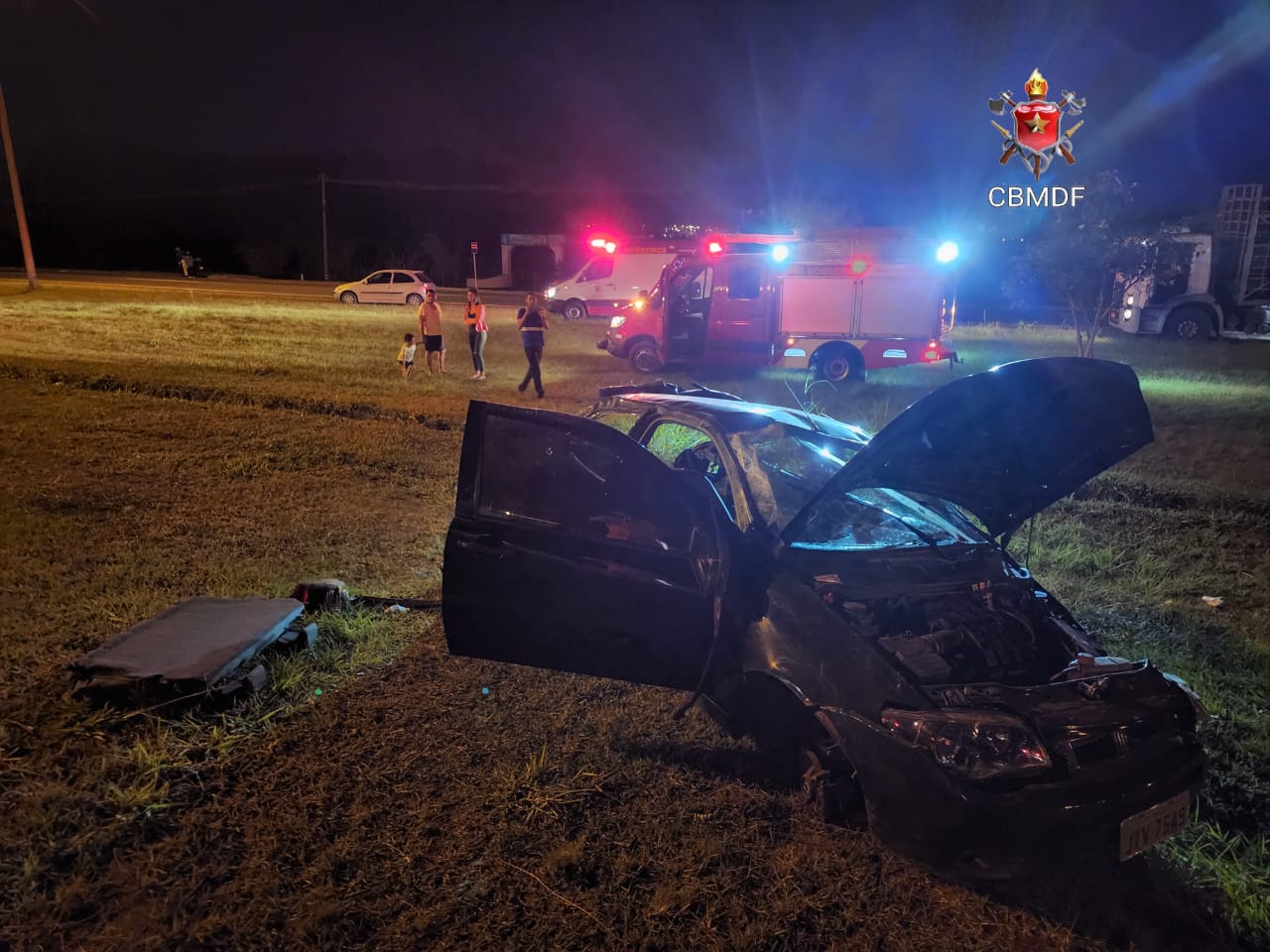 Segundo o Corpo de Bombeiros Militar do Distrito Federal (CBMDF), o motorista, identificado apenas por I.Q.M, teria perdido o controle da direção, saído da via e capotado, parando no canteiro central da rodovia.