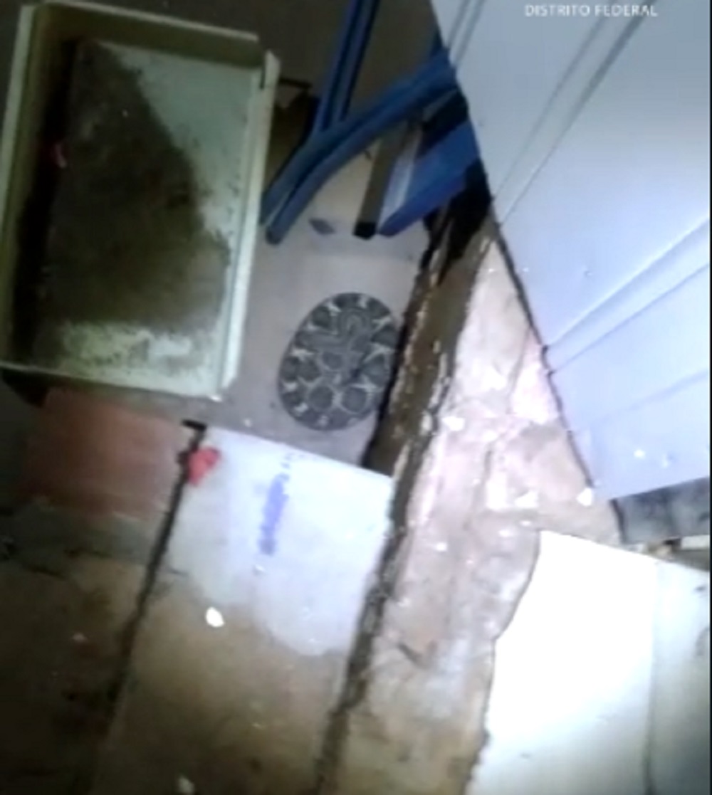 Na noite de segunda-feira (4), a Polícia Militar Ambiental (PMA) resgatou uma cobra cascavel em uma residência na Candangolândia (DF).