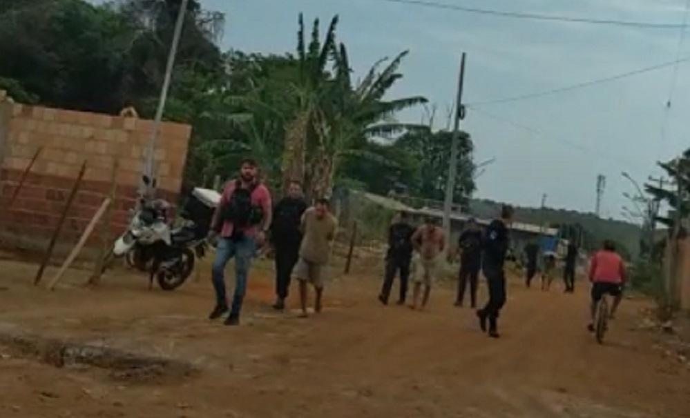 O vídeo abaixa mostra os policiais conduzindo os fugitivos às viaturas: