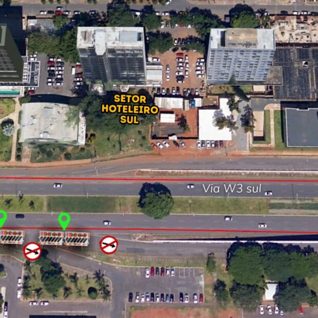 Quem vai pelo Setor Hoteleiro pela S2 em direção à W3 Sul encontrará o tráfego interrompido na altura do Meliá Brasil 21, devendo pegar o desvio pela W5 Sul para acessar a W3 Sul pela via S3. Haverá painéis móveis indicando os desvios, além de agentes de trânsito atentos a toda a movimentação.