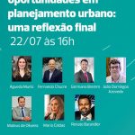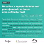 Nesta quarta-feira (22), às 16h, vai acontecer o webinar gratuito “Desafios e oportunidades em planejamento urbano: uma reflexão final”, fechando o primeiro ciclo da série de webinars proposta pelo Laboratório Arq.Futuro de Cidades do Insper.