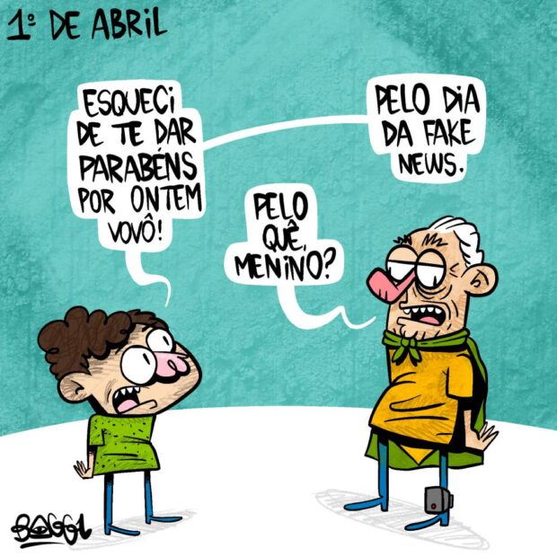 Esse retrato em miniatura da sociedade nos lembra que, no mundo atual, as linhas entre o factual e o fabricado são tão borradas que poderiam ser consideradas uma obra de arte abstrata. A charge não apenas nos faz rir, mas também nos faz pensar – um lembrete de que, em uma era de informações instantâneas e desinformação galopante, talvez devamos dar mais ouvidos às histórias contadas por nossos avós… ou talvez não, especialmente se eles estiverem vestidos para uma marcha da fake news.