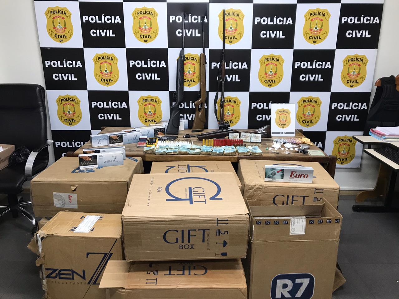 Policiais da 8ª Delegacia de Polícia, no SIA, prenderam um homem de 44 anos por tráfico de drogas, associação para o tráfico, porte ilegal de arma de fogo e munições, lavagem de dinheiro e contrabando.