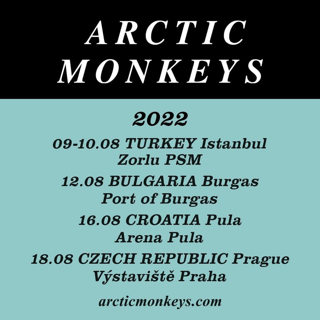 Nesta terça-feira (16/11). Após quase 3 anos afastados dos palcos a banda Arctic Monkeys anunciou uma pequena turnê pela Europa a partir de agosto do próximo ano. Os britânicos se apresentarão na Turquia, Croácia, Bulgária e República Tcheca.