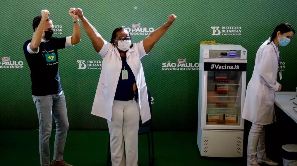 A primeira pessoa vacinada foi Mônica Calazans, 54, enfermeira e moradora de Itaquera. Obesa, hipertensa e diabética, é considerada um perfil de alto risco. Clique aqui para conhecer a história da primeira vacina produzida pelo Butantã, em 1901.
