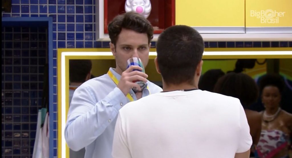 Insatisfeito pelo fato de Lucas falar que ele é indiferente na casa. “Você falou ‘pela parte do jogo ele não liga'”. “Quantas vezes você deixou em aberto?”, retruca o Líder da semana. “É como se eu não ligasse para nada!”, reage Pedro.