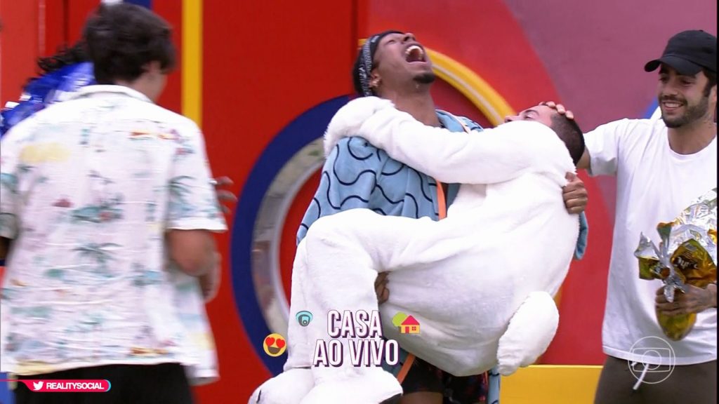 Por fim, Arthur chegou a fingir que sairia pela porta, mas tirou a máscara. Paulo André, Douglas, Scooby e Gustavo pularam em cima do ator. Jessi, Natália, Lina e Eli ficaram surpresos e sem reações.