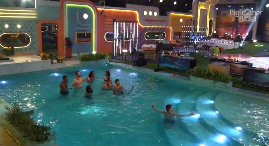 Pela primeira vez, a piscina foi liberada durante a festa. DG, Jessi, Scooby, Linn, Gustavo, Arthur e PA foram os primeiros a se empolgarem e pular na água. Dentro da piscina, aproveitaram para alfinetar o outro grupo gritando “Lollipop não entra”.