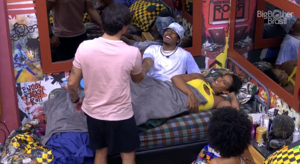 Como Lina costuma dizer, a noite no quarto grunge do BBB 22 (Globo) foi tomado por “brincadeiras bobas e gostosas”, na madrugada desta terça-feira (15). A movimentação começou quando P.A. entrou no ambiente e deu um beijo na cantora.
