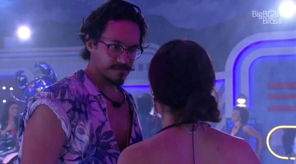 Em outro canto da festa, Jade conversou com Eli sobre a necessidade de se fortalecer no jogo após a eliminação de Bárbara Heck, sua aliada, e a expulsão de Maria: “A gente está fragilizado pelas duas perdas que tivemos em um dia. A gente tem que tirar disso um bagulho para se fortalecer. A gente não precisa mostrar que está bem para a casa, precisa mostrar nas provas. Eu estou fechada com vocês”.
