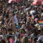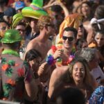 Com o oposto do clima de domingo (11), nesta segunda-feira (12) o Carnaval no centro da capital acontece debaixo de um ensolarado céu, ao som do Bloco Divinas Tetas, que reuniu cerca de 50 mil pessoas entre o Sesi Lab e a Biblioteca Nacional de Brasília.