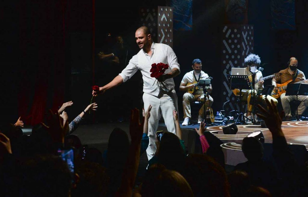 Com uma plateia pra lá de selecionada, Diogo Nogueira fez um show apenas para convidados, na noite desta segunda (8), no Teatro Bradesco, em São Paulo.