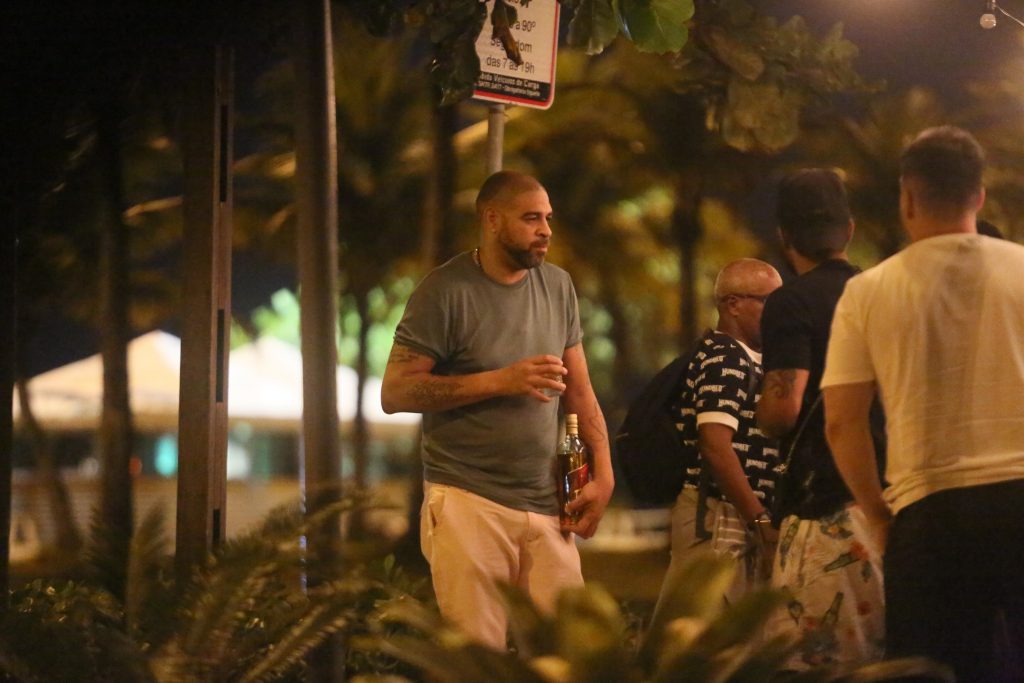Adriano que tem o histórico de se envolver com álcool parecia estar bem a vontade com uma garrafa inteira de whisky.