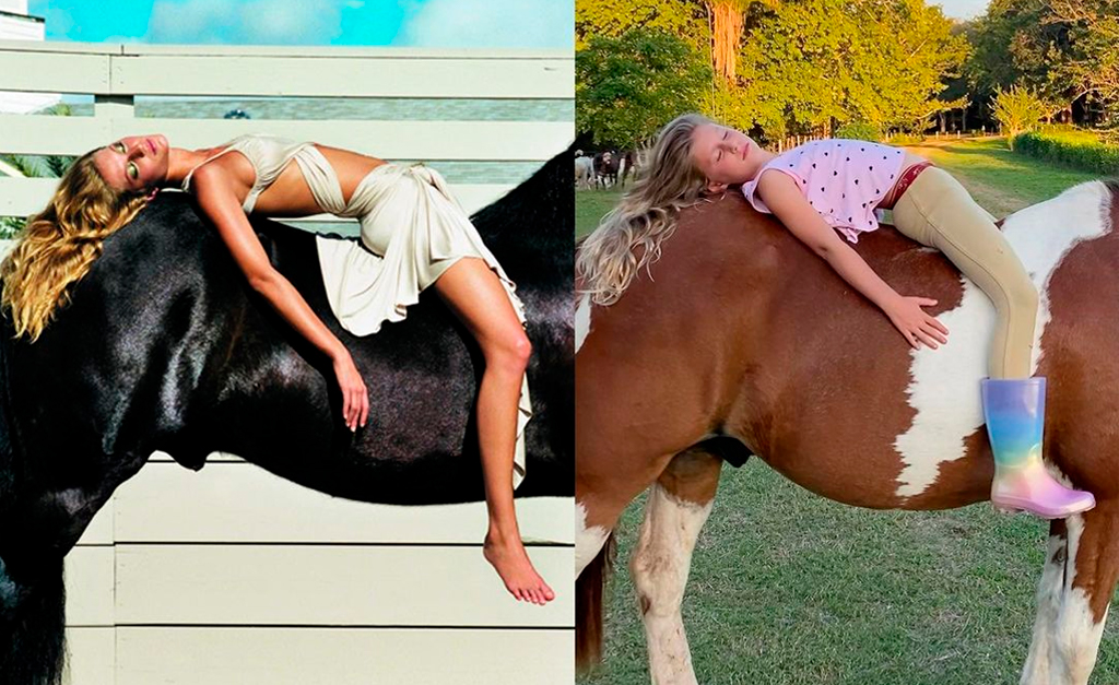 A filha caçula, Vivian Lake, de 8 anos, da über model Gisele Bündchen levou a internet a loucura, após publicação em que aparece reproduzindo uma das fotos mais famosas da mãe, registrada por Steven Klein há 20 anos.
