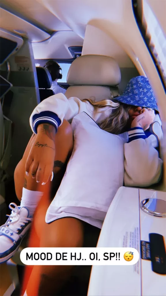 A influenciadora digital Rafaella Santos, de 26 anos, compartilhou com seus seguidores uma foto em que aparece com um look grifado avaliado em R$ 12,8 mil. A irmã de Neymar postou o clique em seu Instagram dentro de um jatinho particular.