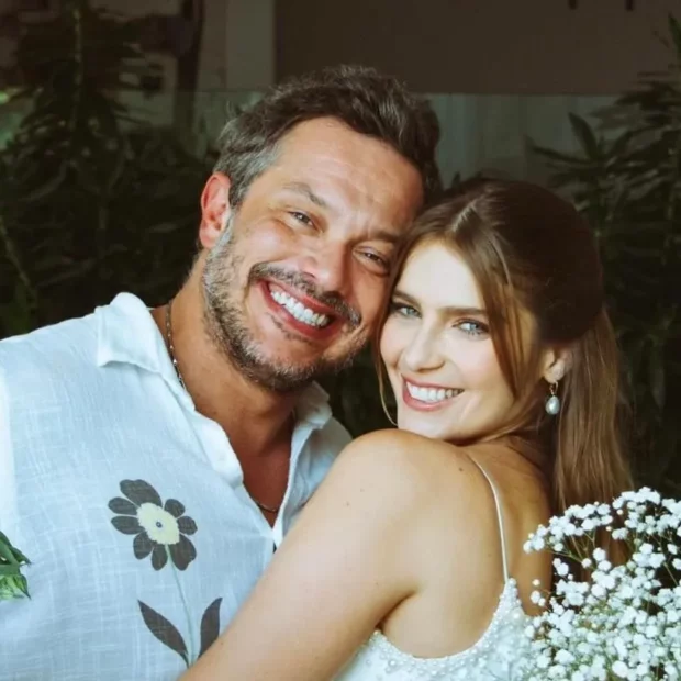 “Casamos no civil. Início da celebração oficial desse amor! Sr. & Sra. Blecher”, escreveu a atriz de “Dom” (Prime Video) no Instagram. A atriz escolheu um macacão branco clássico com pérolas off white, da estilista Lethicia Bronstein Pompeu, para usar na celebração.