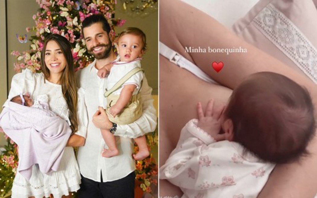 Após publicar uma foto de família no Natal, Romana Novais, 29, mostrou mais um registro doce da pequena Raika, que está com 24 dias de vida.