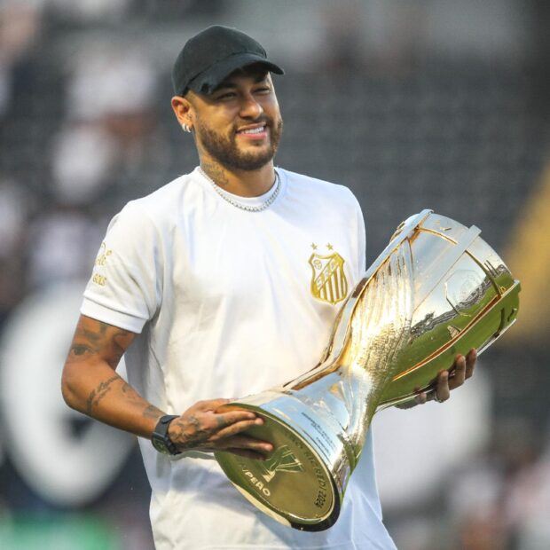 Neymar prestigiou o primeiro jogo da final do Campeonato Paulista, no estádio da Vila Belmiro, no último domingo (31). Ao segurar a taça do campeonato com outras estrelas, o ex-jogador do Santos chamou atenção pelo relógio que usava. O acessório vale mais do que o prêmio do Paulistão.