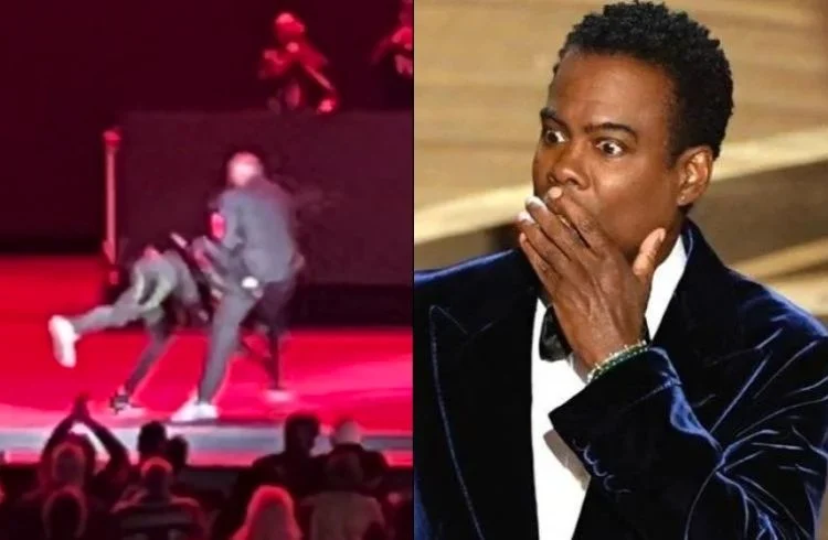 Rock, aliás, subiu ao palco após a confusão e fez piada. “Aquele era o Will Smith?”, perguntou, em referência ao tapa que levou do ator durante a cerimônia do Oscar deste ano e que levou Smith a ser banido de cerimônias do Oscar pelos próximos dez anos.