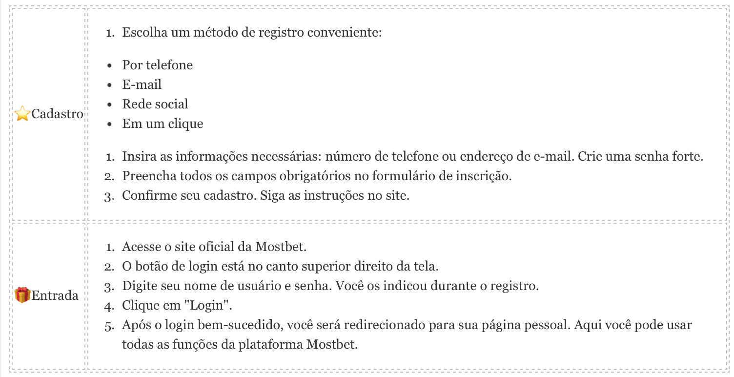 Registrar-se e fazer login em sua conta na plataforma Mostbet é um processo simples. Consiste em várias etapas: