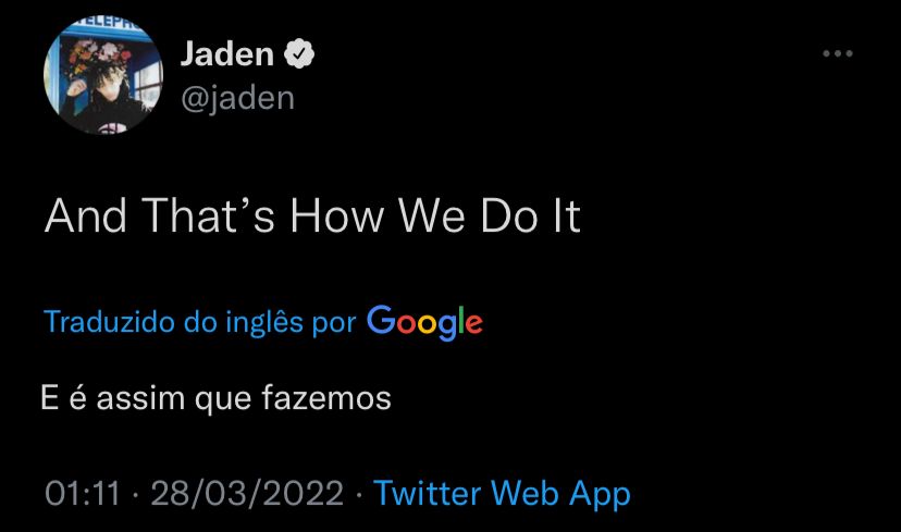 “E é assim que fazemos”, escreveu ele, na madrugada de hoje (28). Apesar de não se referir diretamente ao pai, que recebeu o prêmio de melhor ator por “King Richard: Treinando Campeãs”, o tuíte foi tomado por respostas com vídeos do momento.