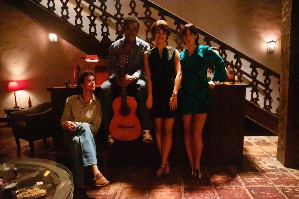 Camila Márdila vive Dedé Gadelha, na época mulher de Caetano e um dos elementos fundamentais para dar a cola ao grupo. “Desde o início eu estava pensando que ia ser mais simples por fazer uma pessoa que não é tão conhecida”, diz a atriz. “Só que, conversando com as pessoas, todo mundo fala de uma maneira botando ela no centro de muitos acontecimentos. Não à toa ela se junta ao Guilherme, com essa cabeça de produzir mesmo. E muita gente diz que esses encontros só aconteciam porque ela estava ali.”