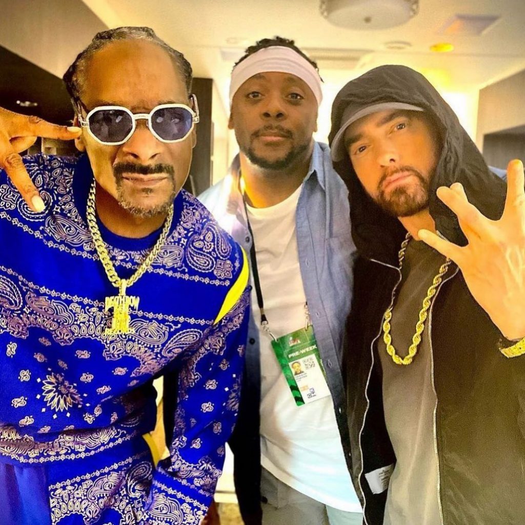 Os astros Dr. Dre, Snoop Dogg e Mary J. Blige trouxeram, no domingo (13), as batidas do hip-hop pela primeira vez no show do intervalo do Super Bowl (Liga principal de Futebol Americano). Eminem invocou um protesto por justiça racial ao se ajoelhar no palco.