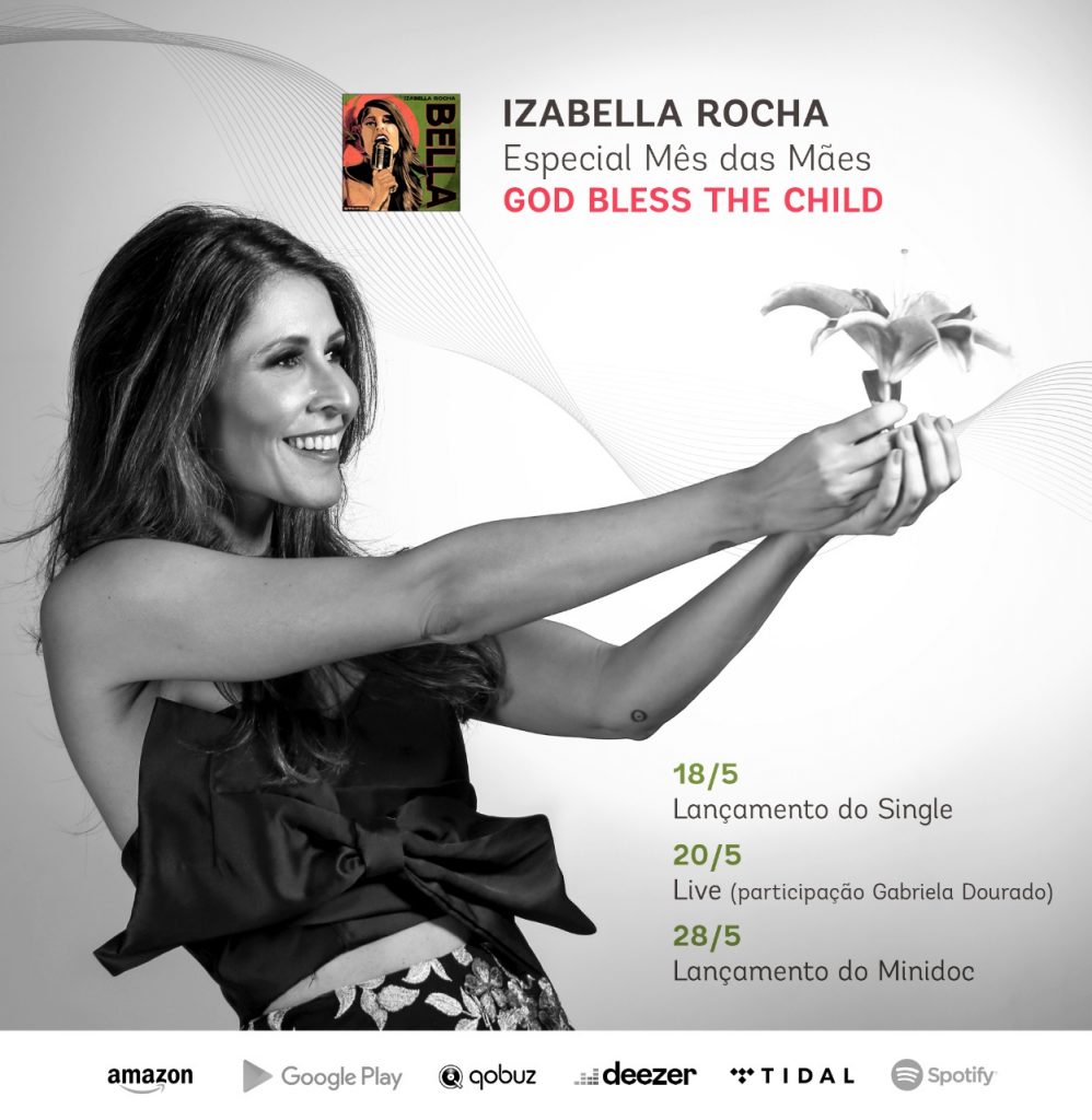 Em continuidade ao lançamento do álbum “Bella” e em homenagem ao Mês das Mães, a cantora Izabella Rocha preparou um cronograma especial. Sua versão para “God Bless the Child”, de Billie Holiday, é composta por três ações: chegada do single às plataformas de streaming, Live no instagram e lançamento do minidoc “Legado” no Youtube.