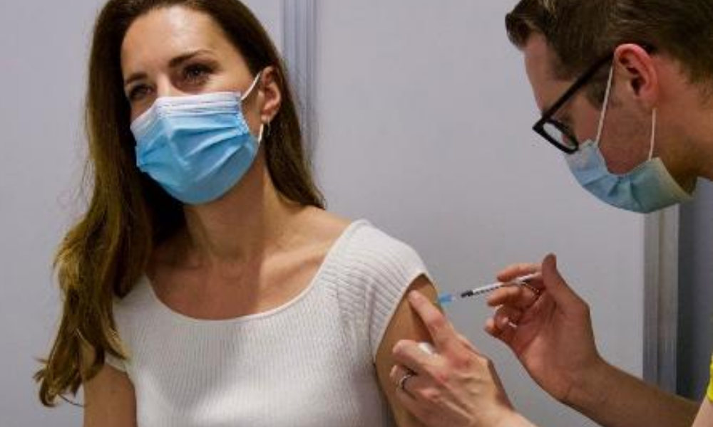 Kate Middleton, 39, duquesa de Cambridge, recebeu a primeira dose da vacina contra a Covid-19 em Londres. Ela mesma fez o anúncio ao postar no Twitter sua foto durante a aplicação do imunizante. “Imensamente grata”, escreveu. “Ontem, recebi minha primeira dose da vacina contra a Covid-19 no Museu de Ciências de Londres. Sou imensamente grata a todos que estão participando da campanha [de vacinação], obrigado por tudo que estão fazendo”, afirmou.