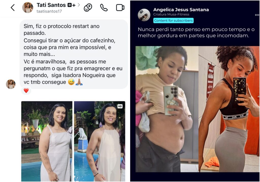 O protocolo de nove dias é um dos pontos que mais despertam curiosidade. Isadora evita revelar detalhes técnicos, mas explica a lógica por trás das transformações rápidas. “O que acontece nesses nove dias é um reset inteligente do corpo, não é nada mirabolante”, afirma.