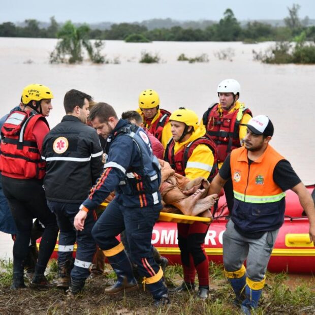 Sete equipes de força-tarefa do CBMSC, com 32 bombeiros militares, atuam no RS. Foram enviadas ainda 10 viaturas 4×4, 11 embarcações, e equipamentos de resgates em deslizamentos.