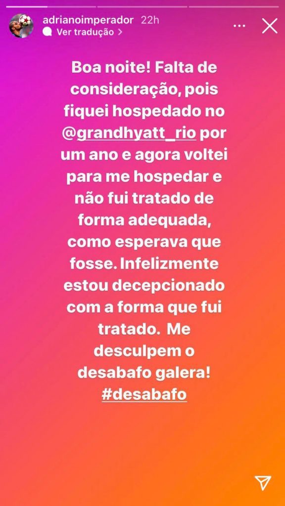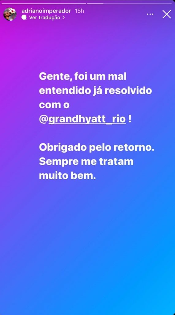 Logo depois postou novamente uma mensagem avisando os seguidores: “Gente foi um mal entendido, já resolvido com o Grand Hyatt. Obrigado pelo retorno, sempre me tratam muito bem”. Oi?