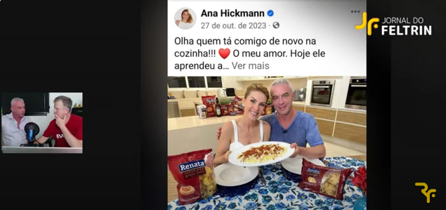 Enquanto Feltrin mostra alguma das publicações de afeto que a apresentadora havia feito enquanto ainda era casada com Alexandre, o empresário acusa Ana Hickmann de ter mentido para seus seguidores.