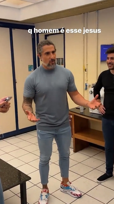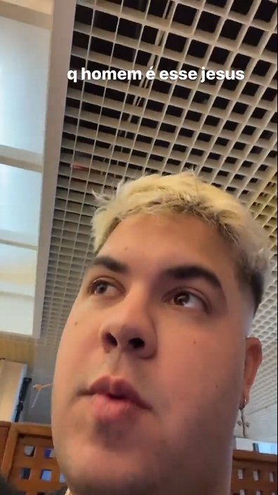 No primeiro vídeo eles estão nos bastidores e Mion parece estar dando as coordenadas aos presentes sobre a atração. E o influenciador diz: “Queria dar pra ele! Que homem lindo meu Deus… olha o peito dele!”