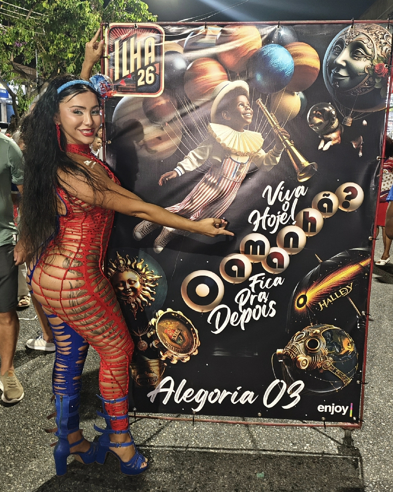 A musa Amanda Fernandes vive mais um capítulo marcante de sua trajetória na União da Ilha do Governador. Em 2026, ela completa seu terceiro ano consecutivo como musa da tradicional escola insulana, consolidando sua presença e seu envolvimento com a agremiação.