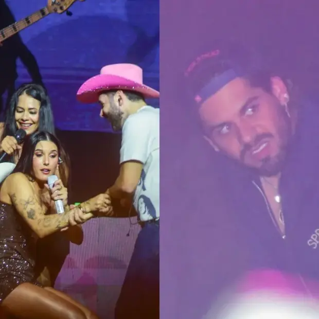 O momento foi registrado pelos fotógrafos de plantão, que também mostraram Zé Felipe nos bastidores do palco vendo a amada cantar.