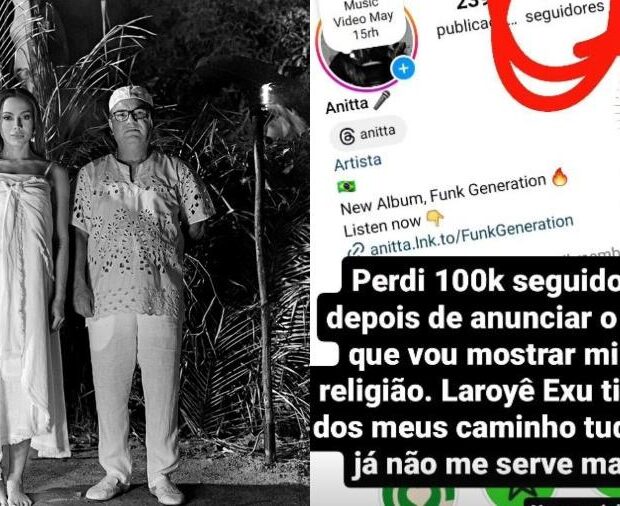 A artista se pronunciou sobre: “Perdi 100 mil seguidores depois de anunciar o clipe que vou mostrar minha religião. Laroyê Exu tirando dos meus caminhos tudo que já não me serve mais. Nessa minha nova fase escolhi qualidade e não quantidade. Axé.”