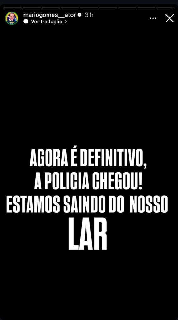 Nos Stories do Instagram, o artista respondeu algumas perguntas dos seguidores nesta quinta-feira (19) e afirmou a chegada da polícia em sua casa nesta sexta. “Agora é definitivo, a polícia chegou! Estamos sem o nosso lar”, escreveu ele.