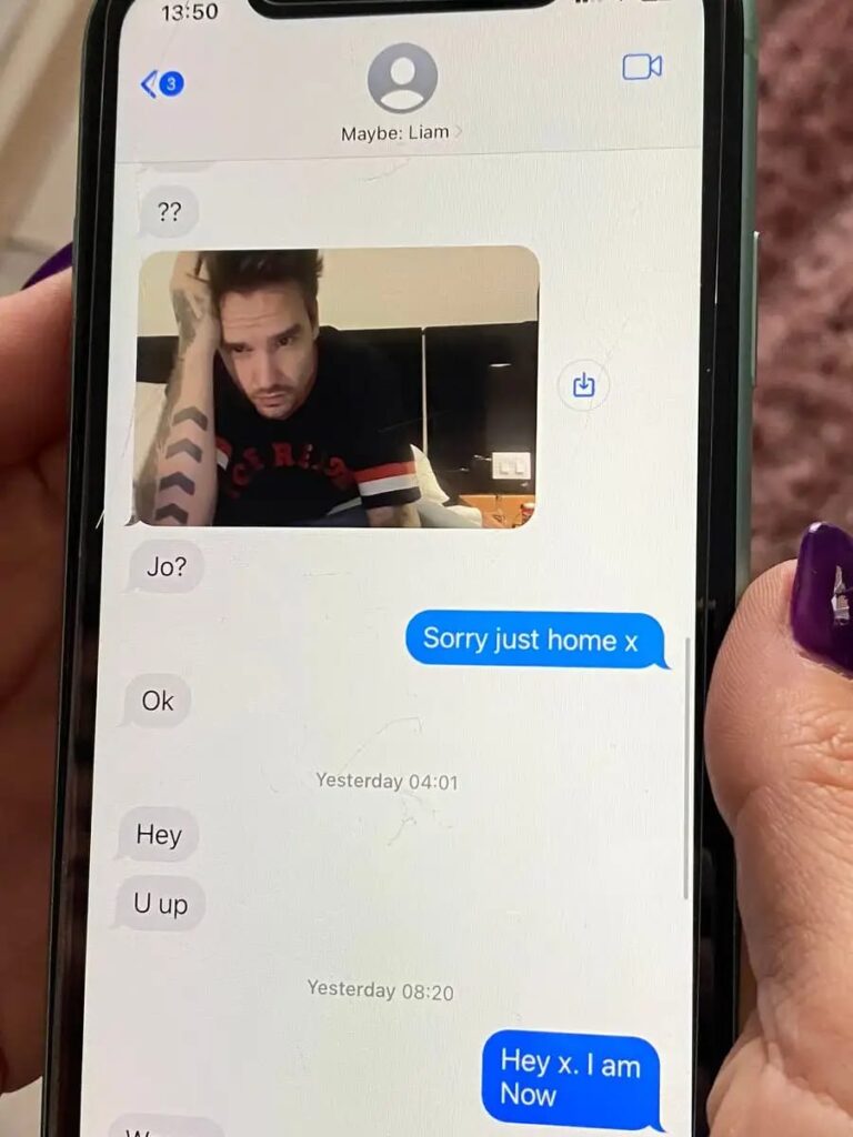 Na segunda-feira (14/10), Liam questionou Jodie sobre sua localização. Ela respondeu que estava na academia com seu filho e ele respondeu de forma descontraída. Na manhã de quarta-feira, poucos momentos antes de sua morte, o ex-integrante do One Direction enviou uma mensagem perguntando se ela já estava acordada. Jodie respondeu por volta das 8h, e os dois trocaram mensagens, com Liam se descrevendo como “relaxando” na Argentina, onde se apresentaria ao lado de Niall Horan.