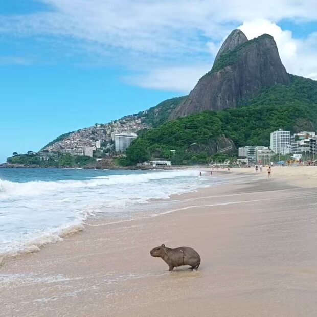 Parece que o Lobo- marinho Joca andou comentando sobre sua breve estadia nas praias do Rio de Janeiro para alguns amigos, pois, na manhã desta sexta-feira (10), alguns banhistas que passavam pela orla foram surpreendidos por uma capivara tomando banho de mar na praia do Leblon, na Zona Sul do Rio.