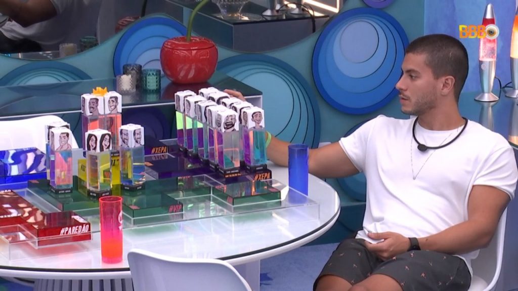 Isso porque o marido da Maira Cardi estava expondo as opções de voto do quarto Lollipop e estava pensando em uma estratégia para fazer DG e Tiago escaparem do paredão, já que ele mesmo já está. Scooby já se colocou a disposição para votar na Larissa, então pela tese de Arthur, se o surfista também puder indicar alguém serão Lina — opção de PA — e Larissa no paredão. Então restaria Douglas e Tiago como opções da casa.