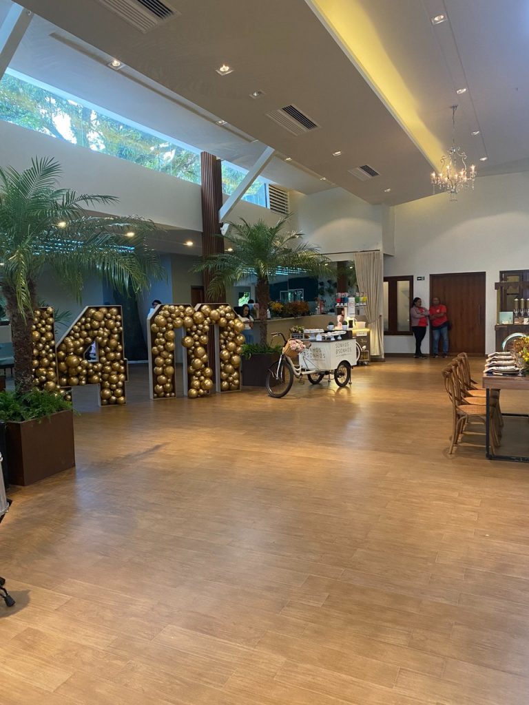 E vou te falar: QUE FESTA! Tudo muito chique, comida à vontade — era churrasco —, chopp — Brahma —, música ao vivo do grupo Dom de Praia e uma decoração impecável! E claro, que Arthur — com uma cara cansada, antes que mencionem que ele estava com cara de quem não queria estar ali, longe de mim insinuar algo — e Maira compareceram né? Tiraram fotos, conversaram com os presentes e no fim da festa, todos ganharam uma maleta linda! O que tem dentro? Ninguém revelou, mas eu fico pensando: se ele está tão rico quanto Maira disse, será que era dinheiro?