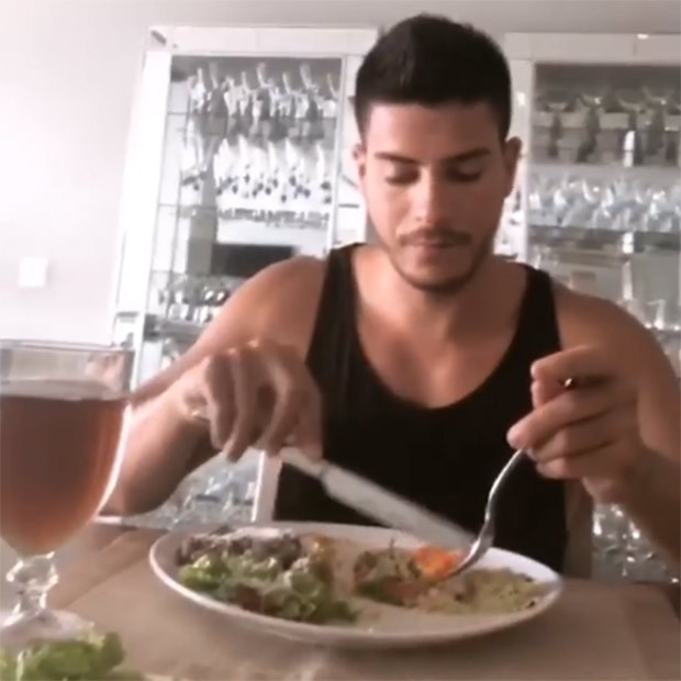 A gata desta vez não gostou nada da iguaria que Arthur Aguiar estava comendo. E o que boy resolveu comer para matar a fome? Purê de batata! Hum que delicia, eu adoro!